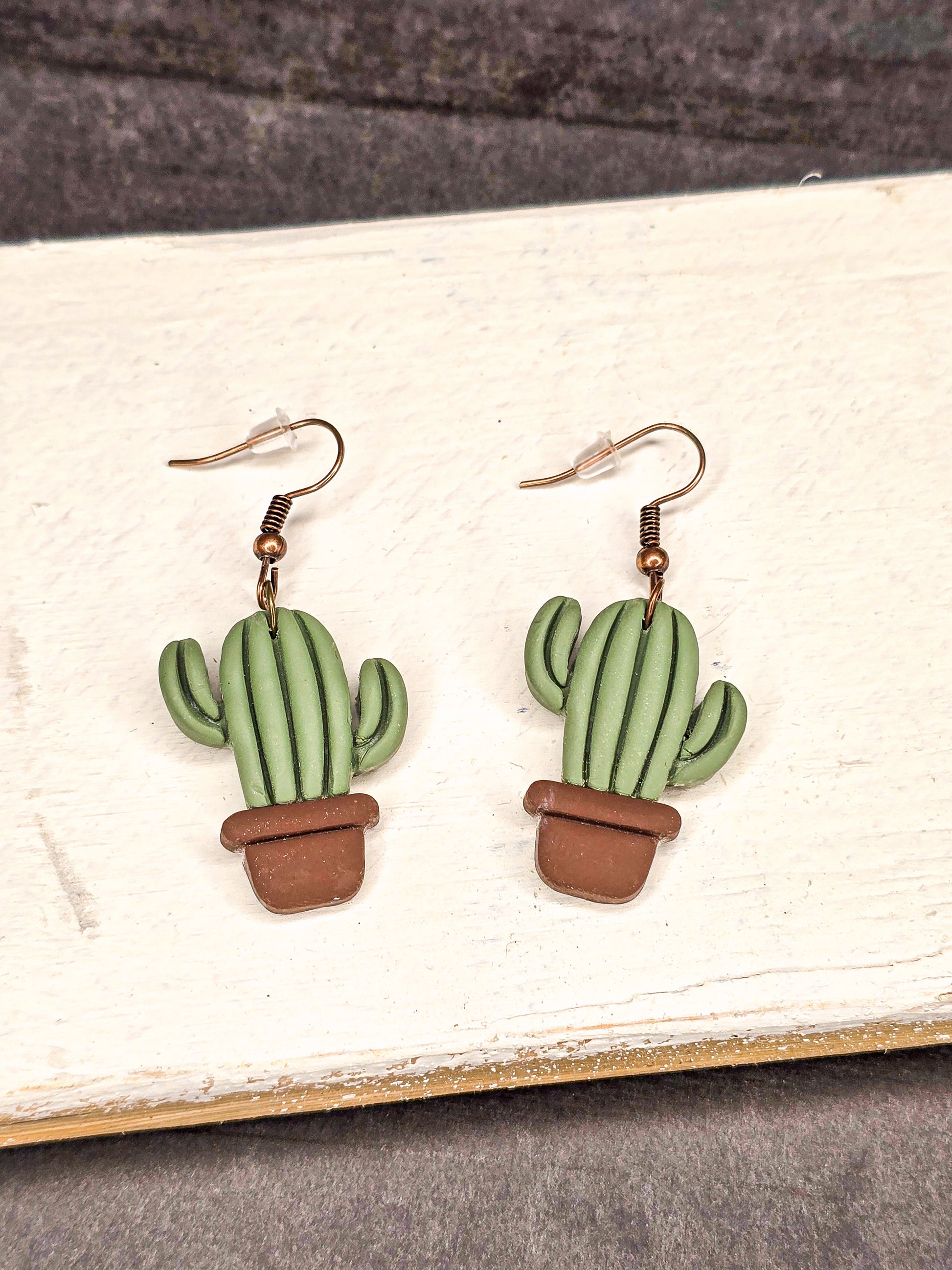 Potted Cactus Dangle Polymer Clay Earrings – Handmade, Lightweight & Hypoallergenic